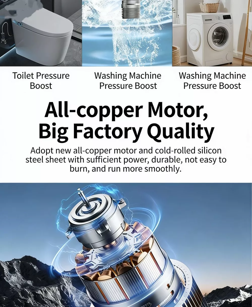 การเพิ่มแรงดันห้องน้ำอัจฉริยะ: รับประกันแรงดันน้ำฟลัชที่เสถียรเพื่อการทำความสะอาดอย่างละเอียด หลีกเลี่ยงการชำระล้างที่ไม่สมบูรณ์และกลิ่นตกค้างที่เกิดจากแรงดันน้ำไม่เพียงพอ