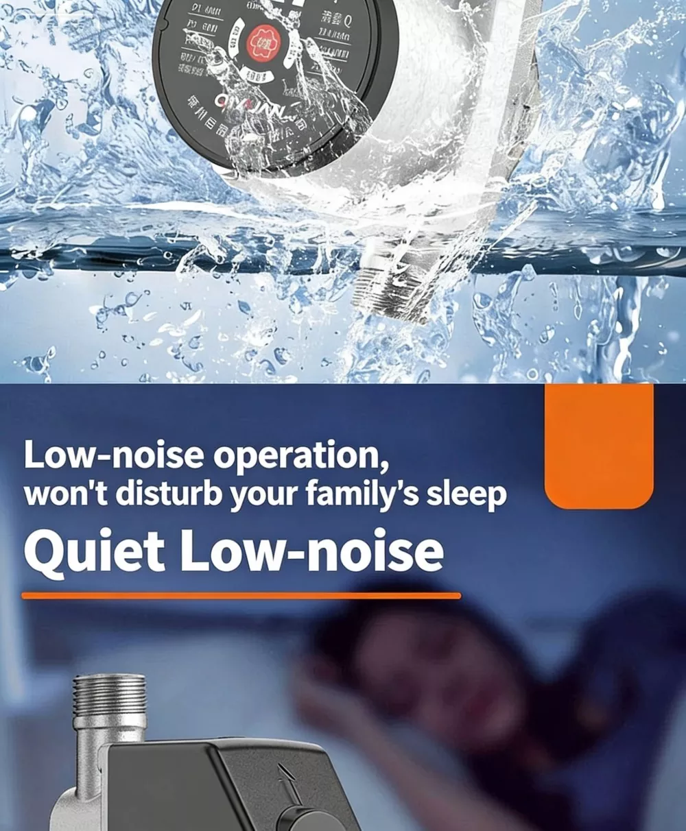 การเพิ่มแรงดันหัวฝักบัว: เพิ่มแรงขับน้ำจากฝักบัว แก้ปัญหาการไหลของน้ำอ่อนและอุณหภูมิของน้ำที่ผันผวน ช่วยเพิ่มประสิทธิภาพประสบการณ์การอาบน้ำอย่างมาก